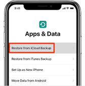 Once the process for the old phone has been completed, we begin recovering contacts in your new iPhone. Turn on your new iPhone, and you will go through simple setup steps. When you reach a setup screen named Apps & Data, click on the option that says Restore from iCloud Backup. You will be prompted for your Apple ID, so you must enter the same ID you used on the old phone. Select the Backup that was created in the old phone. Your device will begin the restoration process, and once it has been done, you can move on to the next setup steps. When the setup is completed, you can view all your contacts in the Contacts App.